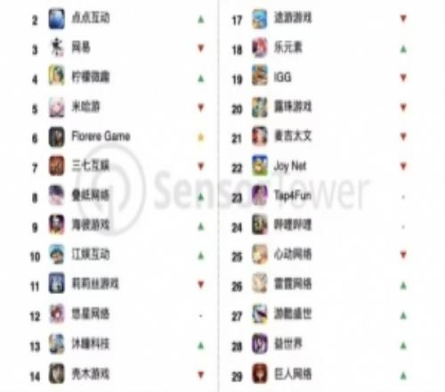 腾讯凭借旗下《王者荣耀》、《和平精英》和《PUBG MOBILE》等王牌手游的稳定表现,蝉联全球手游发行商收入榜冠军