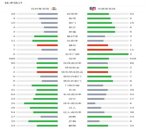 北京时间1月14日,西班牙国王杯1/8决赛展开较量,拉科鲁尼亚迎战马德里竞技。下半场格列兹曼十分角任意球破门。凭借此粒进球,马德里竞技以1比0战胜对手,顺利晋级下一轮。